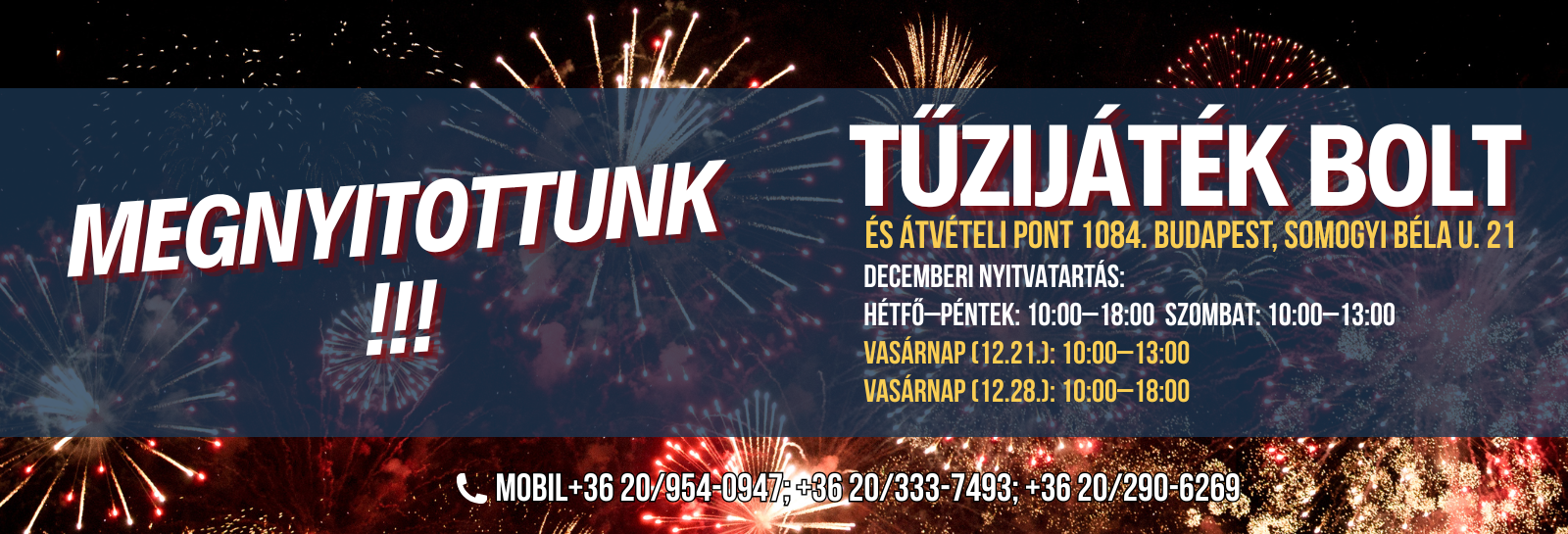 • A tűzijáték termékek ára forintban értendő, és tartalmazza az ÁFÁ-t.